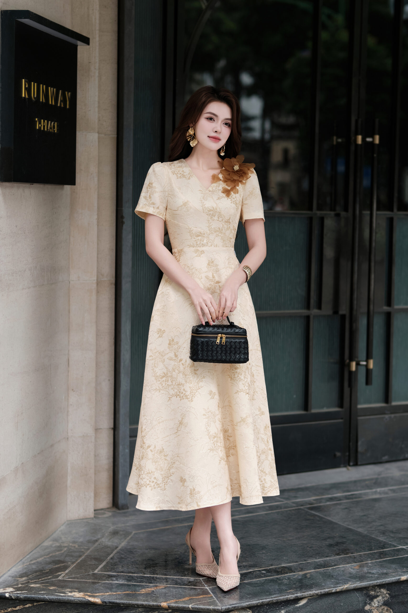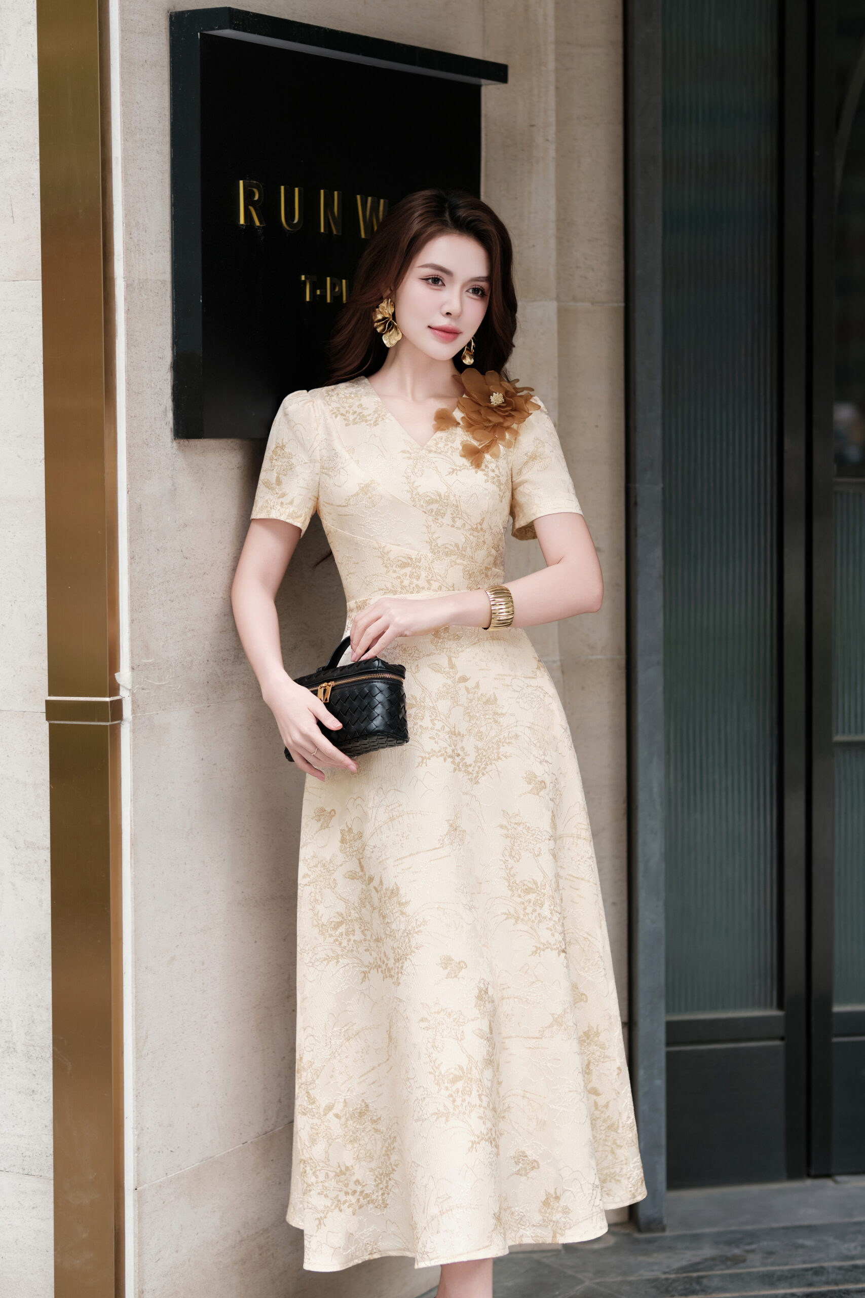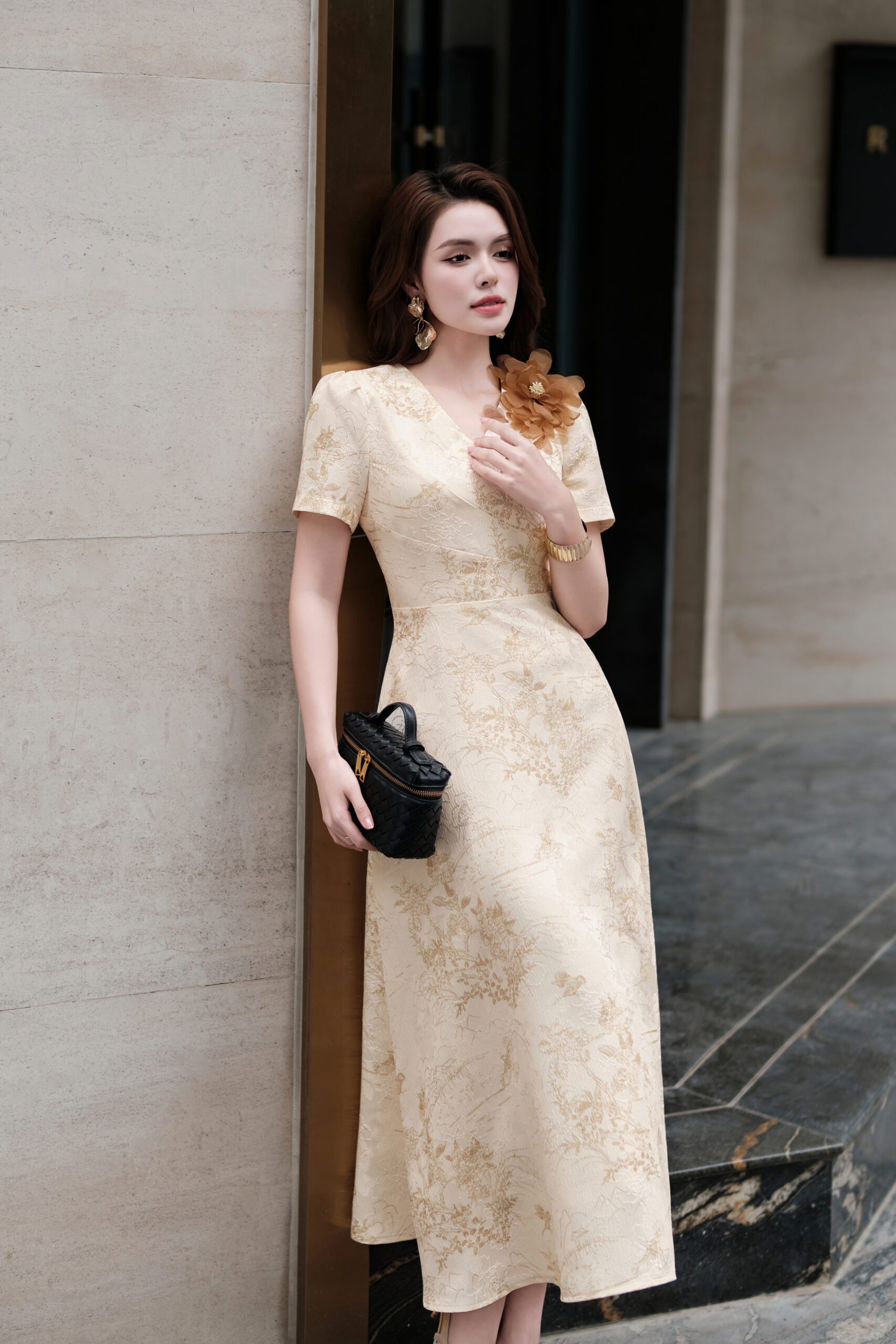 Đầm tiệc gấm cổ tim đính hoa CIRRUS 251150